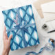 Svällning papper med ett modernt diagonalrutnät i mitten av århundradet av kapslade markvisformer - mellangärde denim blå och ljusblå himmel blå, med vit och mörk markvisera accenter/indigoaccenter