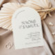 Introducera din bröllpsdag med understatement elegans med vår bågformade bröllpsinbjudan. Denna vackert tillverkade pjäs är designad för par som uppskattar charmen hos modern minimalism, med feta namn i en elegant design som talar volymer med enkelhet.