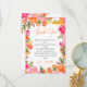Uttryck din tacksamhet med stil med detta vackra vikta tackkort, perfekt för brudshowers. Med en livfull handmålad blomdesign i starka nyanser av rosa, orange och gult utstrålar detta kort värme och glädje. Den eleganta texten "Tack" på framsidan kompletteras av ett hjärtligt budskap på insidan, vilket gör det enkelt att visa din uppskattning för gästernas närvaro och gåvor. Idealiskt för en boho- eller blomsterinspirerad shower, fungerar detta kort som ett vackert minne och ett genomtänkt sätt att säga tack.