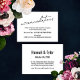 Bjud dina gäster på praktiska kort som hjälper dem att ta reda på dina boende arrangemang på bröllopsdagen och andra detaljer med detta moderna och enkla kort. En snygg textgrafik med överlägg som lyder "boende" utformades med ett modernt script-teckensnitt. Använd mallfälten för att anpassa dessa inklusionskort med dina personliga uppgifter. Bakgrunden kan ändras till valfri färg du föredrar. Tveka inte att höra av dig om du har några särskilda önskemål. // 158 //