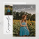 Denna moderna, eleganta och stilrena examensannonsering med foto inkluderar en överlagring med en examenstudent i skrivstil och möjlighet att anpassa namn, skola och foto på framsidan. Baksidan har gratulationer och evenemangsinformation med ytterligare 2 foton. Ett bra sätt att visa upp din examen.