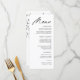 Dessa moderna menyer i snyggt bröllop är lätta att anpassa! De har topografi i eleganten, "Menu" i rent svart, samt en flock fåglar på baksidan.