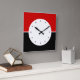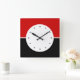 Moderna väggur med rött, svart och vitt färger på klockan ansikte i den här dekorativa väggdesignen för ditt kök, badrum eller något rum i ditt hus som du vill lägga till lite färg och tecken. Contemporary som fungerar i vilket rum som helst som du behöver ett ljust tillbehör till stänk i färg.