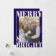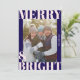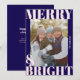 Sprid säsongens glädje med detta djärva och moderna "Merry & Bright" julkort med överdimensionerad typografi och en layout med fullständiga foton. Det eleganta marinblå och ljusa pastellrosa färgschemat inramar ditt älskade familjögonblick med en rolig och festlig touch.