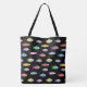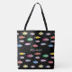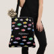 Moderna flerfärgade fiskar på svart Totebag. Vattumannatexten kan anpassas! Text endast på framsidan.