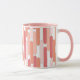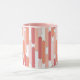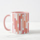 Kaffet mugg har en modern mönster av "tabbar" i skuggor av rosa, persikor och korall.
