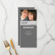 Moderna menykort för bröllop med två initialer i monogram. Design av Elke Clarke ©. Ersätt bilden med ditt eget foto och använd denna mångsidiga designmall för att skapa dina egna menykort till bröllopsfesten. Använd förslagen eller välj "anpassa" för alternativ till färg och typsnitt och använd redigeringsverktygen för att skapa dina unika menykort för dukningen på bröllopsfesten. Se dina ändringar i realtid på datorskärmen. Välj bland vackert papper och 8 olika kortstorlekar.