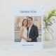 Tacka era bröllopsgäster med detta moderna fototackkort i mjuk blå färg. Baksidan har ett förtryckt meddelande som tackar gästerna för att de firade er dag. Kan anpassas med ert foto och namn. För par som vill ha ett rent, minimalistiskt sätt att skicka tack efter bröllopet.