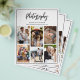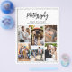 Moderna, trendiga fotopaket och pris collage folder. Designen innehåller 6 bilder, typsnitt skript ''fotografering'', ditt namn eller studio namn och webbplats på framsidan. Anpassa ytterligare med 3 ytterligare portfölj bilder, paket och pris guide, qr-kod, din logotyp och sociala medier på baksidan. Mall för fotograferings prislista låter dig enkelt och effektivt visa upp de fotopaket du erbjuder.