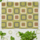 Denna atomera tidsininspirerade abstrakt art mönster har en mängd olika fyrkanter med en kartreuse grönt och brun färg palett. En underbar presentidé för älskare från vintage 1940- och 1950-talskonsten stilar.