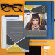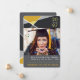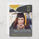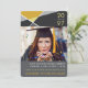 En modern och trendig, könsneutral examensannonseringskortdesign med konstnärliga geometriska färgblock i guld och grått med ett enda foto i en djärv typografisk layout.