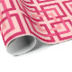 Omslagning papper i en retromodern mönster av förreglande fyrkanter, i ljus och djup korall rosa, och mörk korallrött, på bakgrunden för rosa av pastellkoraller