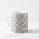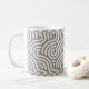 Lägg till en touch av modern konstnärlighet i din dagliga rutin med denna slående keramiska mugg. Muggens design med djärva svarta geometriska mönster av böjda, koncentriska linjer skapar en hypnotisk effekt som påminner om vågor eller labyrinter. Dekorativa rutmönstrade ramar upptill och nedtill inramar det centrala motivet och ger muggen en balanserad och stilren finish.