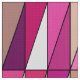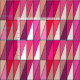 Fabric in a Mid Century Modern geometric grid of triangles in shades of violet, orchid, fuchsia rosa, sandy beige and glass