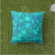 Utomhuskudde i ett representativt, geometriskt mönster av hjul eller redskap, i skuggor av havsblått, akvot och turkos/påk - lite Steampunk, lite medelårhundradets moderna
