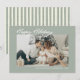 Modern julkort med salvia grön färg och fotolayout, perfekt för par eller familjer som söker ett personligt och elegant sätt att dela säsongshälsningar. Designen har en mjuk salvia grön ram som omger ditt anpassade julfoto, vilket skapar en ren och förfinad look som är perfekt för att visa upp en älskad familjeporträtt. Längst ner kan du lägga till ett personligt meddelande och år, vilket gör det enkelt att anpassa för alla familjer eller par. Baksidan av kortet visar chic salvia gröna och vita ränder, vilket ger en snygg och sammanhängande finish. Detta neutralt tonade julkort passar modern, minimalistisk smak samtidigt som det ger en varm och hjärtlig presentation. Perfekt för att skicka jul-, nyårs- eller vintersäsongshälsningar med en samtida, tidlös estetik, är denna design både visuellt tilltalande och mycket mångsidig för en bred målgrupp och familjestilar.