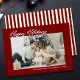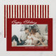 Modern röd-vit högtidsfotokort med fotolayout, perfekt för par eller familjer som söker ett personligt och elegant sätt att dela säsongshälsningar. Designen har en djärv röd ram som omger ditt anpassade högtidsfoto och skapar en ren och förfinad look som är perfekt för att visa upp en älskad familjeporträtt. Längst ner kan du lägga till ett personligt meddelande och år, vilket gör det enkelt att anpassa för alla familjer eller par. Baksidan av kortet visar snygga handritade röda och vita ränder, vilket ger en elegant och sammanhängande finish. Detta festliga julkort passar modern, minimalistisk smak och ger en varm och hjärtlig presentation. Perfekt för att skicka jul-, nyårs- eller vintersäsongshälsningar med en samtida, tidlös estetik, är denna design både visuellt tilltalande och mycket mångsidig för en bred målgrupp och familjestilar. Tillgängligt