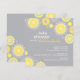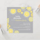 Glada retro-gerbera i solgul färg i olika storlekar bildar en ram runt denna slående fyrkantiga baby shower-inbjudan på en djärv platingrå bakgrund. Modern text med gemener utan seriffer "baby shower" tillför en ren och samtida touch, med gul kalligrafiskrift som framhäver den hedrades namn. Den könsneutrala gula och grå färgpaletten gör den till ett perfekt val för alla baby shower-firande. All text är helt anpassningsbar för ditt evenemang.