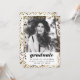 Fotoexamensmeddelanden som dubblar som examens- / studentfestinbjudningar! Med din examenstudents foto omgivet av guld- och svart konfetti, i kombination med moderna feta teckensnitt. Baksidan av kortet innehåller inbjudningstexten. Om du bara vill använda kortet som ett meddelande, tryck på "rensa" för att lämna det tomt! Fungerar för både högskole- och gymnasieexamen. (Observera att det metalliska guldkonfettit bara är en utskriven effekt - ingen riktig guld folie kommer att användas i designen!)