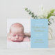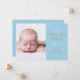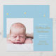 Modern guldskrift foton baby pojke, födelseannons kort för att presentera din vackra nyfödda baby. Framsidan har ett foto av din baby tillsammans med chic guld och vit text för din babys namn och födelse statistik på en blå panel som du kan anpassa till en färg som du väljer. Baksidan har gyllene stjärnor på snören på en matchande blå bakgrund. Designad av Thisisnotme©