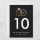 Med sammanflätade falska guldbröllopsringar, är detta dubbelsidiga svarta bordskort en fin tillägg till din mottagningsdekor. Anpassa all text, inklusive det två bokstäver stora parets monogram, bordnumret och bli kreativ med de två raderna text längst ner som era nya efternamn, bröllopsdatum, plats och till och med anpassade bordnamn eller en notis om er kärlekshistoria.