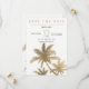 Moderna guldpalmträd eleganta save the date spara datumet