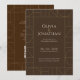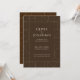 En modern bröllopsinbjudan med eleganta guldsmycken mot en rik mörkbrun bakgrund. Sofistikerad typografi och varma toner skapar en tidlös, lyxig design - perfekt för par som söker en förfinad och stilfull fest.