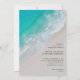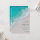 Moderna havsstrandskript och elegantens tropiska bröllopsinbjudan. Innehåller text i trendskript och fantastisk havsfoto från stranden. En del av en samling.