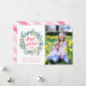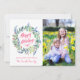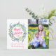 Modern julkort med fotografi. Kortet har en botanisk krans målad i akvarell och har en plats för text och ett foto.