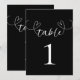 Moderna hjärtan svart-vit bröllopsbord nummer inbjudningar