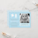 Inbjudan för moderna, stilfulla och minimalist blått för Christening eller för dop en pastellfärgad i hedern av pojken. Inslag för dop för designsärdrag gillar nyckel- duvan, stearinljuset med en kor och ett utrymme för fotopersonifieringen av ungen. På den omvända sidan är ett pastellfärgat mönster för blått- och vitsparresicksack. Personifiera med händelse specificerar lätt.