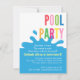 Invitera familjen och vänner för en period för kyla ut och en rolig tid med denna färgglada bassängpartyinbjudan som är perfekt för sommar! Den moderna och minimalist inbjudan har ett stort stänk av vatten och ord "bassängparty" i färgglatt typsnitt. Den omvända sidan har en gullig rubber ducky flöte. Perfekt för någon som planerar en födelsedag i en trädgårdbassäng eller uppblåsbar bassäng eller innehav händelsen på en vattennöjesfält- eller clubhousesimbassäng. Personifiera med ditt party specificerar lätt.