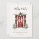 Modernt manus "Julhälsningar" vattenfärg ytterdörr dekorerad med julgrönska bild och extra utrymme på baksidan för personligt meddelande platt julkort.
