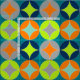 Mycket snyggt och trendutformning med en stor cirkel som upprepar mönster. inspirerad av halvseklets retrografik. Fabriksblandning av färger i grått, tealblått, kalkgrönt, orange.