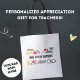 Den moderna lärarens anpassningsbara totebag är ett stilfullt och praktiskt sätt att visa din tacksamhet mot de underbara pedagogerna under alla evenemang för att hedra lärare. Designad med färgglada skolelement och tillbehör fångar denna tote perfekt essensen av utbildning och uppskattning och symboliserar läraryrkets verktyg och glädjen av att lära sig. Toteväskans estetik är fräsch och iögonfallande, vilket får den att sticka ut mer. En av de viktigaste fördelarna med denna toteväska är dess mångsidighet. Lärare kan använda den för att bära sina undervisningsmaterial, personliga tillhörigheter eller till och med matvaror, vilket gör den till en praktisk accessoar för daglig användning. Dess rymliga inredning och hållbara konstruktion säkerställer att den kan hantera kraven på en upptagen lärares schema. Detta är helt anpassningsbart för att passa dina behov! För att anpass