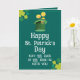 Skicka hjärtliga välgångsönskemål med detta eleganta St. Patrick's Day-kort. Mot en djup tealbakgrund med livfulla limegröna shamrock-ackcenterpareringar visar framsidan en festlig grön topp hatt med guldmynt som svävar ovanför, tillsammans med budskapet "Må irländarnas tur vara med dig!". Insidan innehåller även en traditionell välsignelse som lyder "Må vägen resa sig för att möta dig". Med en shamrockkantad design och gott om plats för ett personligt meddelande är detta högkvalitativa kort ett genomtänkt sätt att knyta an till vänner och familj denna 17 mars.