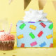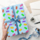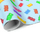 Moderna mångfärgade söta björnar på ljusblått omslagspapper.