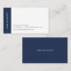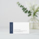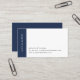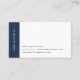 Den moderna designen har en minimalistisk känsla. Affärskorten har ditt namn utmed den lämnat sidan i vitt på marinblått, med tre linjer kontaktinformation till högerna. Kort går tillbaka till helblått, med ditt namn eller val av anpassningsbar med tonvikt i modern vit text.