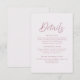 Moderna minimala dammiga rosa skrivna bröllopsdeta tilläggskort