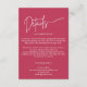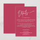 Moderna minimalistiska Magenta röda bröllopsdetaljer Infogningskort, denna design är en del av en stor samling, som verkligen är värd att titta på också, du kan ändra textens färg, typsnitt och mer. Har du en anpassningsförfrågan? Vänligen kontakta oss så hjälper vi dig gärna.
