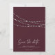 Moderna Minimala Strängljus Foto Spara Datum - Modern minimalistisk design med gnistrande strängljus, vacker modern kalligrafi och ditt vackra foto. Visas i burgunder, men kommer att finnas tillgänglig i andra populära färger. Du kan också enkelt ändra bakgrundsfärgen för att samordna med ditt färgtema. * Finns även som digital nedladdning.