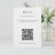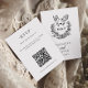 Detta moderna bröllops-svarskort med QR-kod kombinerar traditionell elegans med digital bekvämlighet, perfekt för par som vill effektivisera sina gästsvar. Ena sidan visar romantiska duvor och en blomsterprydd vapensköld med parets initialer och bröllopsdatum i en minimalistisk svart-vit design, som håller sig till ett klassiskt tema. Den andra sidan visar en tydligt presenterad QR-kod och instruktioner för gästerna att svara online, tillsammans med en ren serif-teckensnitt för en tidlös look. Idealiskt för formella, rustika eller traditionella bröllop, detta kort kombinerar stil och funktionalitet för en smidig RSVP-upplevelse.
