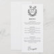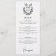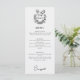 Denna eleganta menykort för bröllop har en raffinerad svart-vit design, krönt med en romantisk duva och en blomsterprydd vapensköld samt personliga initialer i monogram. Layouten är ren och strukturerad, med klassisk serif-typografi som tydligt presenterar tre rätter (t.ex. förrätter, huvudrätter och desserter) med anpassningsbara rubriker i ett vackert organiserat format. Perfekt för formella, rustika eller minimalistiska bröllop, tillför denna meny en tidlös sofistikation till varje kuvert, vilket säkerställer en sammanhängande och polerad måltidsupplevelse för gästerna samtidigt som den förstärker den övergripande eventdekoren.