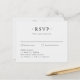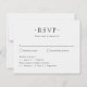 Denna prisvärda eleganta svarskortsdesign för bröllop har en minimalistisk svart-vit layout som blandar tidlös sofistikation med modern klarhet. Ena sidan visar en delikat duva och en blomsterprydd vapensköld ovanför parets namn och bröllopsdatum, vilket ger en förfinad, personlig touch. Den andra sidan presenterar ett rent och organiserat svarsformulär med utrymme för gästernas svar, måltidsval och en svarsdeadline. Detta budgetvänliga svarskort matchar perfekt resten av den koordinerade brölloppsserien och bibehåller en sammanhängande estetik som är idealisk för formella, romantiska eller destinationbröllop, och erbjuder både stil och funktion för en vacker och strömlinjeformad gästupplevelse.