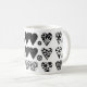 Moderna minimalistiska hjärtan och blommor, svart kaffemugg