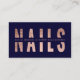 En modern stilfull nagelkonstnärvisitkort med modern för snitt typografi ut i rosa guld för faux omkullkastar på en trendig och en elegant marinblå bakgrund. Om du behöver någon customization, tveka inte, i att kontakta mig