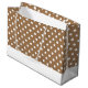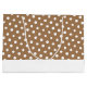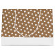 Den här moderna konstruktionen har en pulserande mocha brun bakgrund fylld med vinklad vit polka dots. En ljusvit grund kant rand kompletterar sammansättningen.