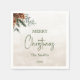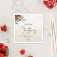 Moderna och elegant fir-koner med röda bär, som ställs mot en snöbakgrund med vita nyanser för rosa och pärlgryn. Möjlighet att ändra bild, namn och datum.