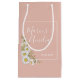 Söt blommigt: bröllop presentsäcksdesignen har vattenfärgsvit daisy på rosa med textblock för vitt anpassade i modernt typsnitt