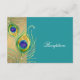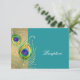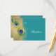 OBS: Detta är en platt tryckt bild, det finns inga lager, juveler eller metalliska bläck som används - men det är en mycket realistisk grafisk återgivning. FÄRGPALETT: turkosblå, guld borstat metallutseende, tan, smaragdgrön, lime, akva, kunglig blå och lila DESIGNKOLLEKTION: Detta är en komplett ensemble av produkter för bröllop, bröllopsdusch, par-dusch och formella företagsarrangemang. Brölloppsinbjudan har elegant virvlande påfågelsfjädrar som målades för hand i akvarell av Audrey Jeanne Roberts. Det ursprungliga konstverket fångar vackert fjäderns iridescens i ljusa, djupa juveltoner. Det finns grafiskt skapade diamantliknande juveler med en guldinfattning runt dem som är rullade längs fjädrarnas kurva. Bakgrunden är